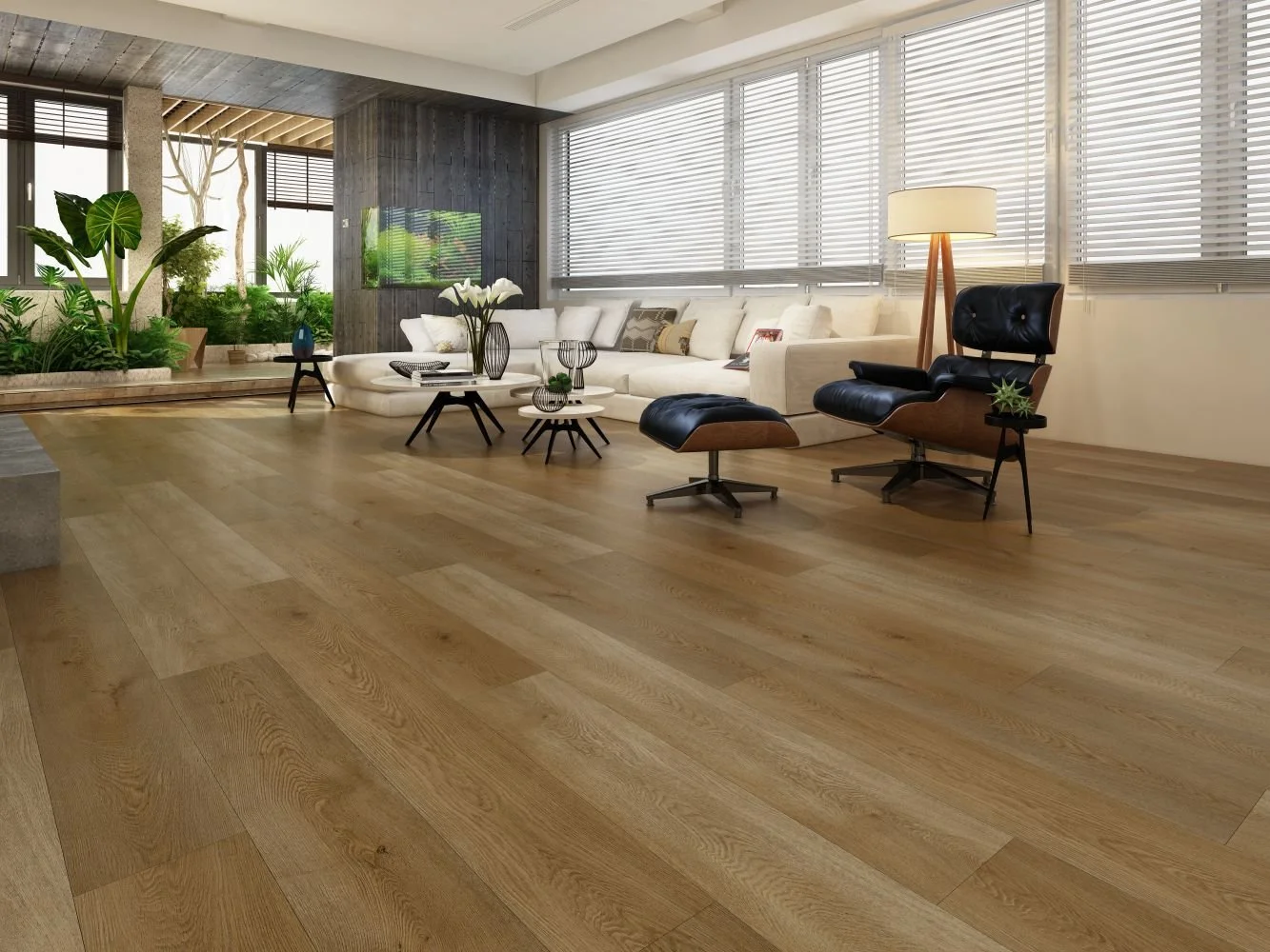 This vinyl plank is a beautiful golden, light to medium, warm brown-toned vinyl plank. It pairs very well with other warm-toned pieces and can bring warmth to any room!