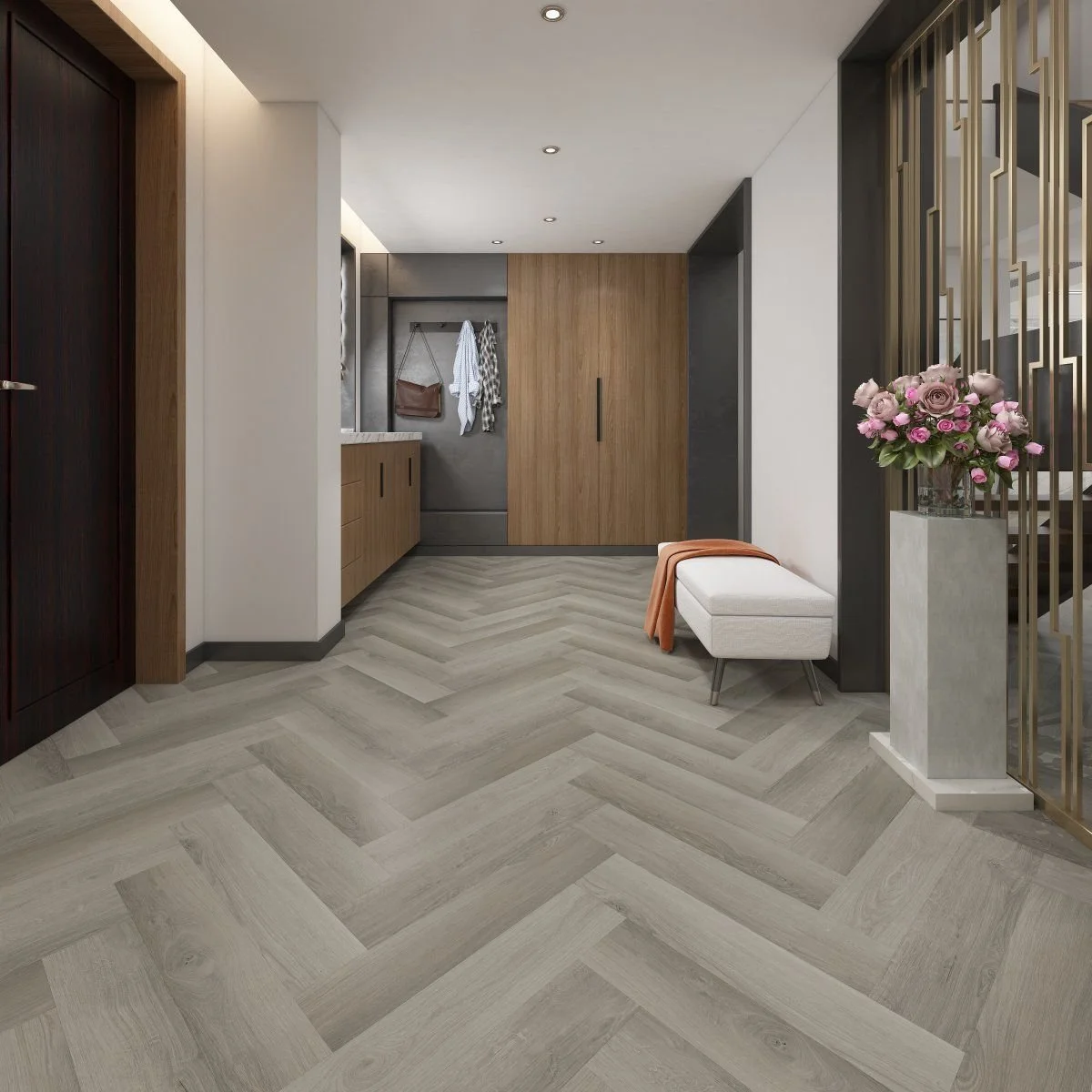 This charming vinyl plank is a mix of cool-toned gray and greige tones! Its herringbone pattern creates an intricate color variation that brings a fun and classic style to any room without becoming too busy. Its light and neutral tones allow for multiple styles to be paired with, such as monochromatic colors to even bold and bright colors. If you’re looking for a modern style that will brighten your style, this is the vinyl plank style for you!